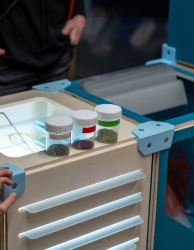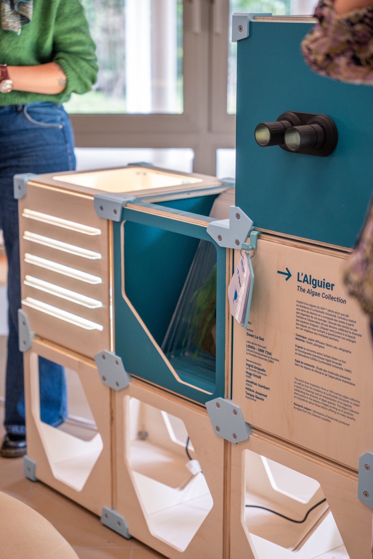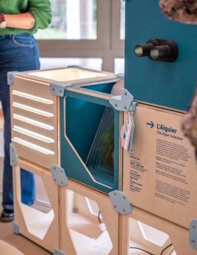 Ce module d’exposition permet de découvrir les différentes morphologies des algues, leur milieu de vie, les spécificités de leurs conditions de vie, la diversité des usages des algues par l’être humain et leurs propriétés et les menaces à leur survie.