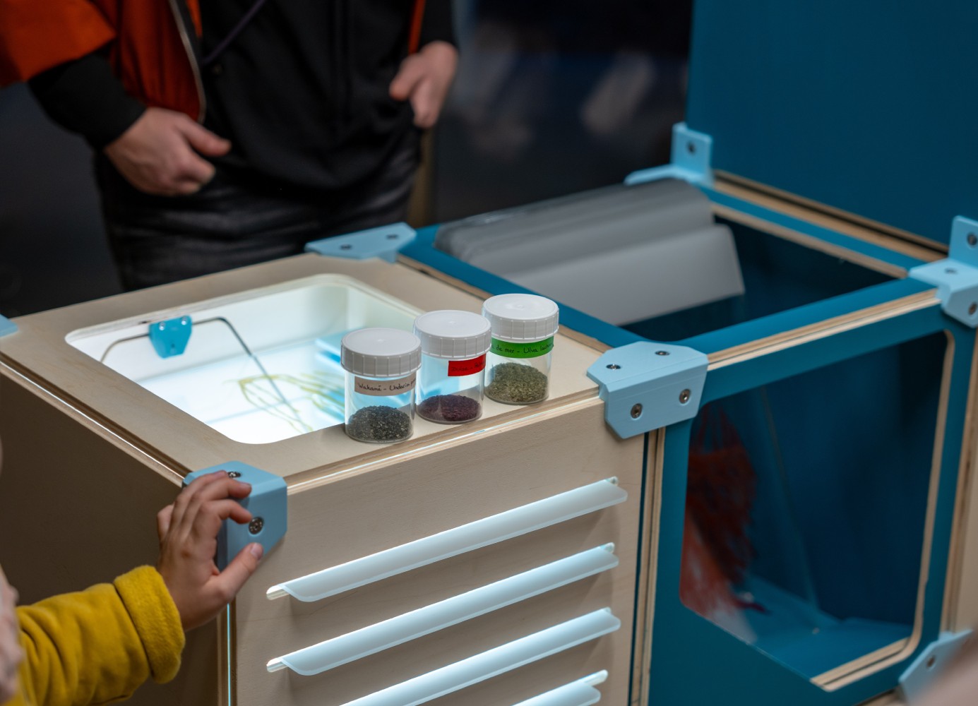 - Manipuler des plaques en PVC et les insérer dans des fentes dédiées pour créer “un bouquet d’algues”.