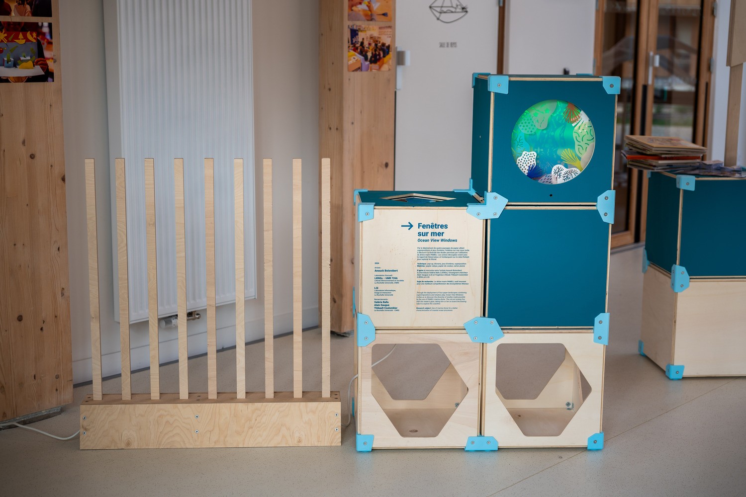 J’ai voulu faire ressortir quatre thématiques de leur travail pour aborder la pluralité de leur recherche et je trouvais que l’idée d’images qui apparaissent et prennent leur sens grâce à une source lumineuse illustrait plutôt bien la mission d’une recherche scientifique. » Anouck Boisrobert