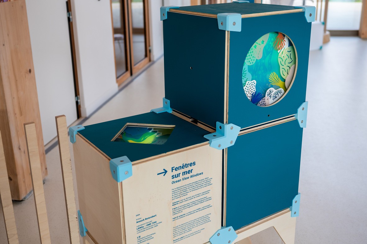 La création artistique offre à voir quatre dioramas qui interprètent la vision des études que le drone PAMELi permet de mener. Ces quatre paysages en papier sont autant de fenêtres ouvertes sur les recherches menées grâce à l’utilisation du drone.